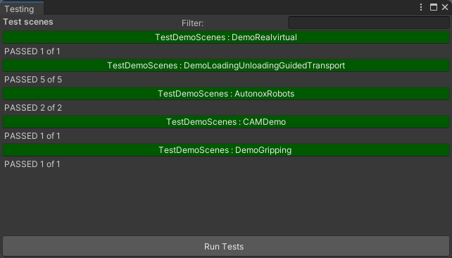 Based on Unity's test automation framework (more information can be found in the [Unity documentation](https://docs.unity3d.com/Packages/com.unity.test-framework@1.4/manual/index.html)), we have integrated a testing extension for our customers. All test scenes are defined in a scriptable asset, allowing you to extend tests by adding additional scenes as needed.