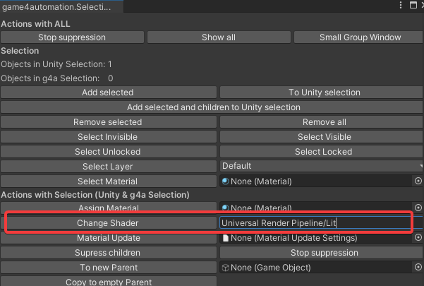 <figure><img src="https://260262196-files.gitbook.io/~/files/v0/b/gitbook-x-prod.appspot.com/o/spaces%2FpYxFg97YnJX96UzNNTSd%2Fuploads%2Fgit-blob-9076252d17905ad7fb127c690e0b819c2b7dcc38%2Fperformance-changeshader.png?alt=media" alt=""><figcaption><p>Changing shaders to new render pipeline in scene with SelctionWindow</p></figcaption></figure>