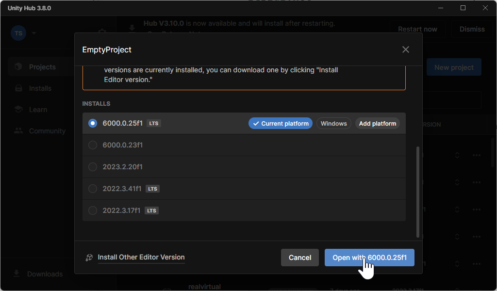 2. **Select Your Project in Unity Hub:** Open Unity Hub, select your existing project, and change the **Editor Version** to the latest version (6000.X).