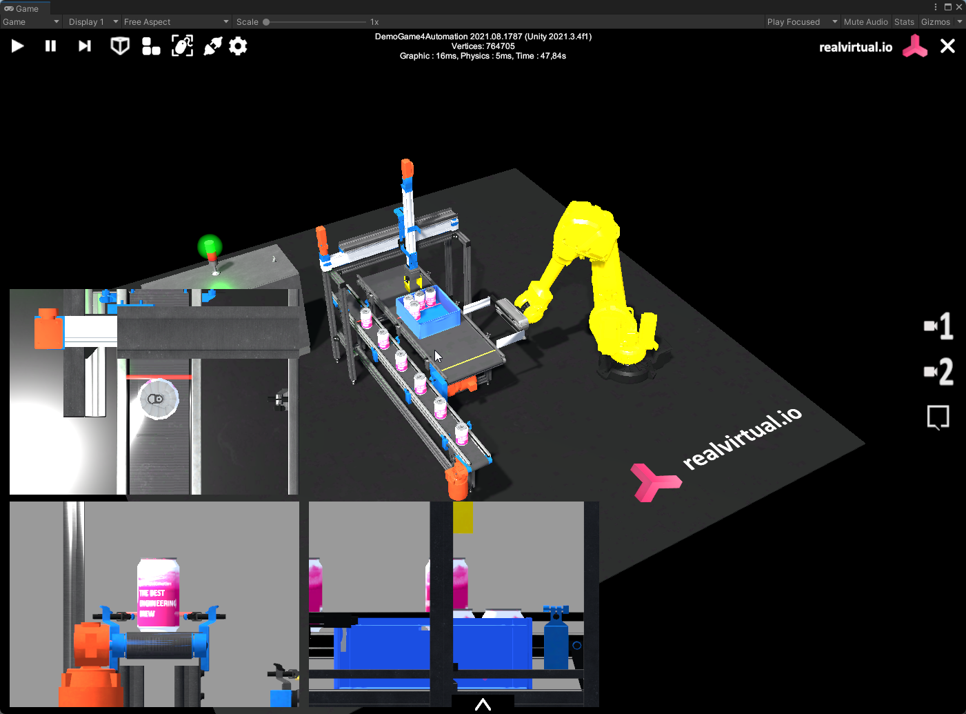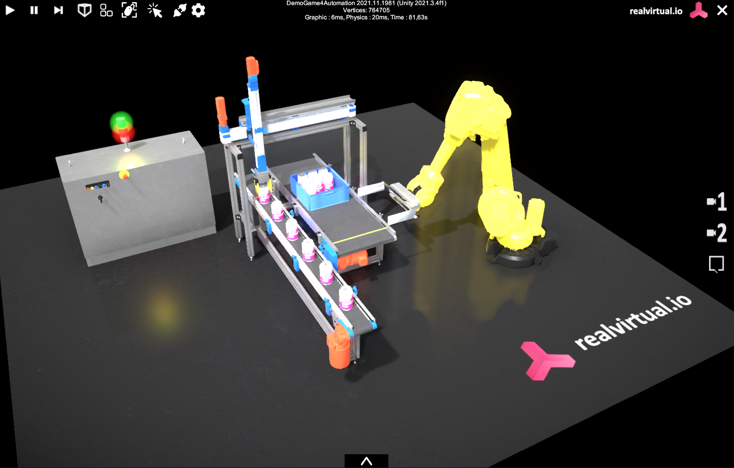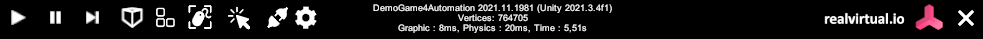 The Runtime UI is part of the realvirtual.io prefab. It can be enabled and disabled in the Realvirtual (before 2022 *Game4AutomationController)*, which is a script on the top level of the [Realvirtual](https://doc.realvirtual.io/components-and-scripts/game4automation) prefab.