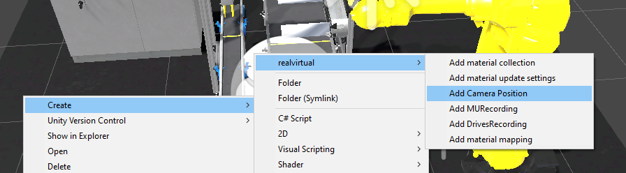 If you use a standard *Realvirtual (before 2022 Game4automation)* component in your scene, all scenes are sharing the same standard camera settings. To create a new camera position setting you need to create a new scriptable component like this: