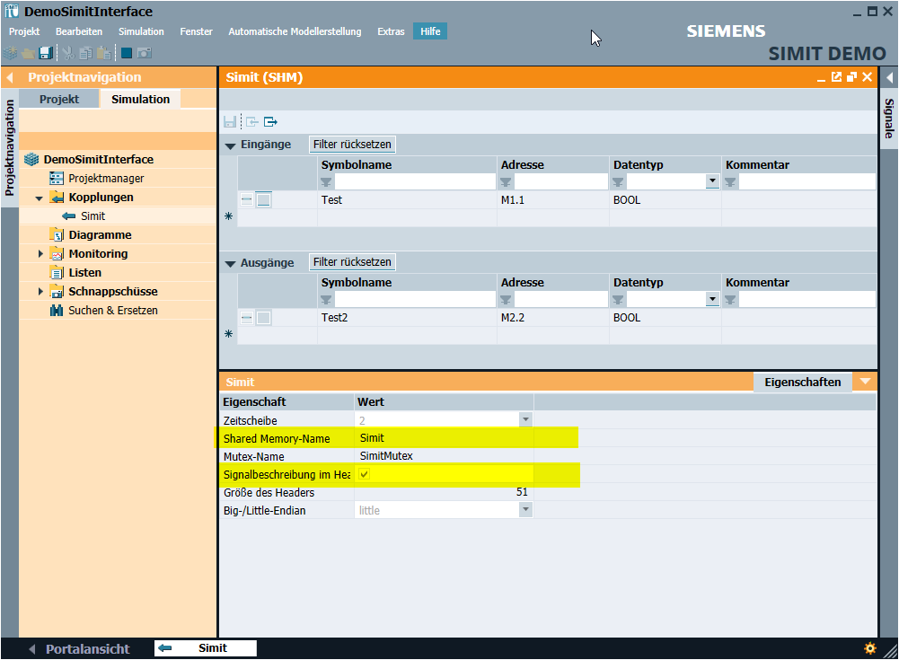 Next you need to configure the Shared Memory Interface . The SHM Interface needs to get a name (in the Example “Simit” which is exactly the same as in Simit (see the picture):