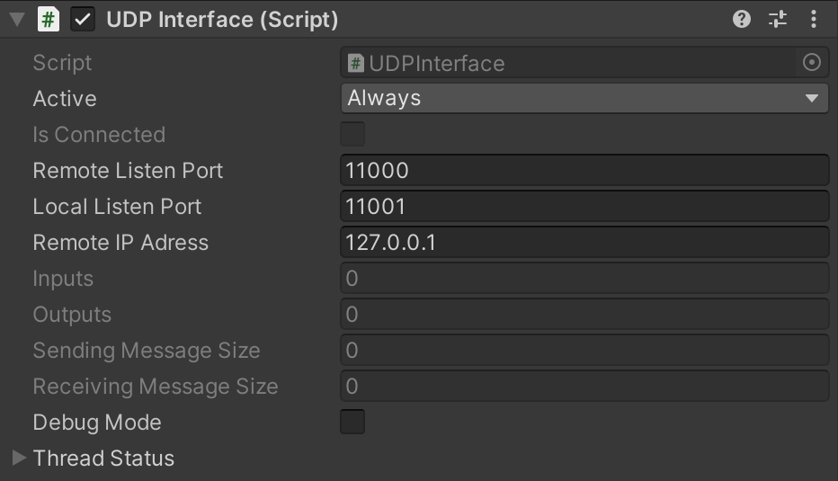 * **Debug Mode** - Enables detailed logging of sent and received UDP messages for troubleshooting