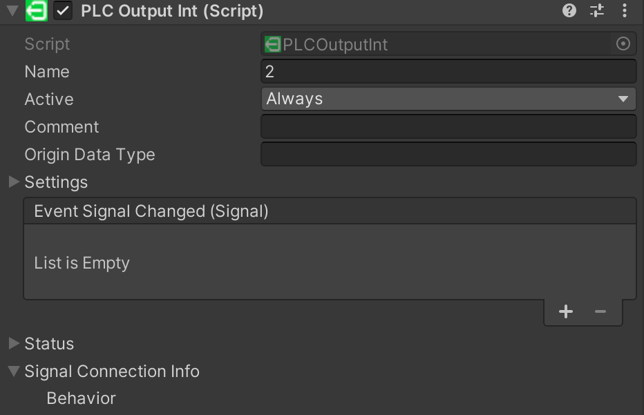 * `PLC_OUT` - OUTPUT signal (External application → Unity)