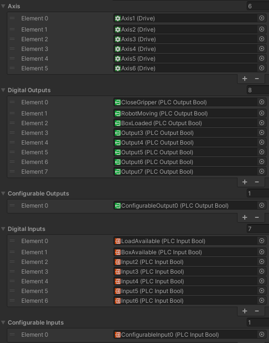 Assigned PLCInputBool Signals to the configurable robot inputs.