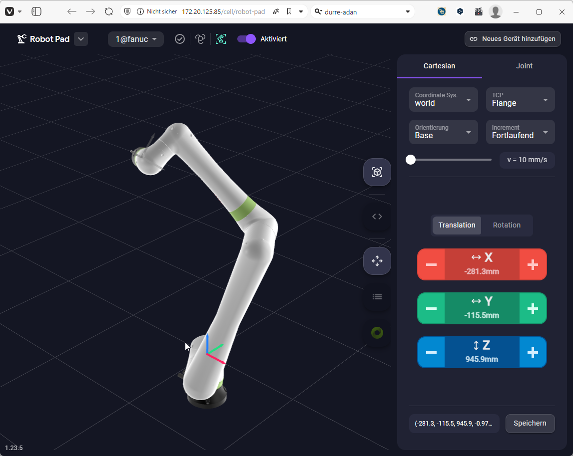 In Teach Mode, the robot automatically aligns with the current Wandelbots NOVA Status. This mode allows precise control over the robot's positioning and target creation.