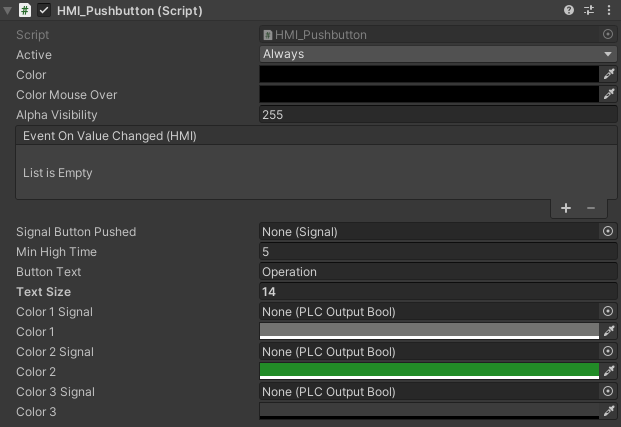 * `Color 1 Signal` to `Color 3 Signal` and Colors: the button can change the color depending on boolean Signals