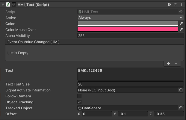 * `Tracked Object:` tracked Object of the HMI-Text