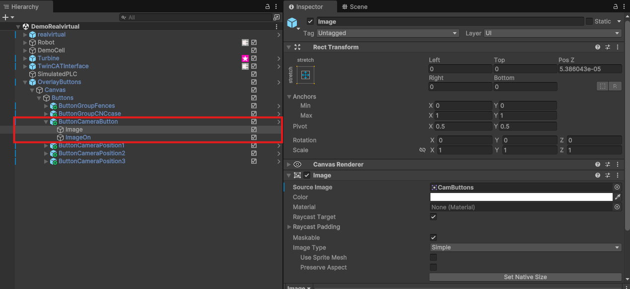 * "Right Click" in your project and select "Create/realvirtual/Add Camera Position". This creates a scriptable object where you define the position of the camera.