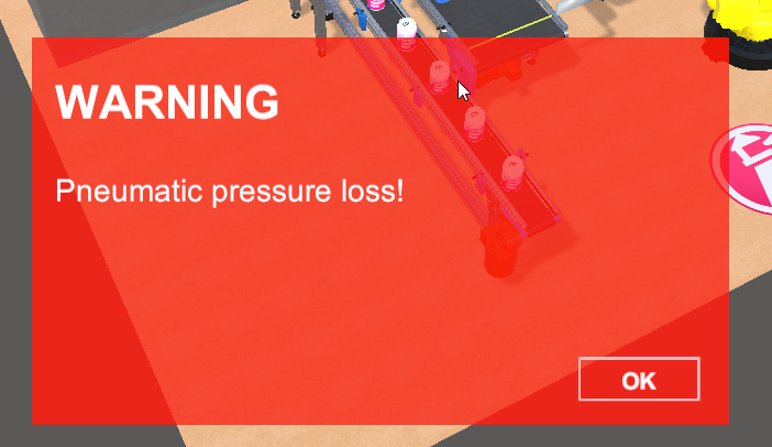 The UIMessageBox is a modal message box that is opening as an overlay over all windows in the scene. It can be turned on by a PLC Output signal.