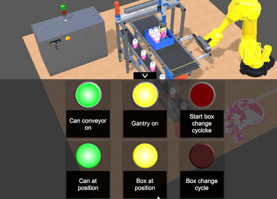 UI Components can be used to display PLC Signals on the screen or to control PLC Signals during simulation. Currently the UI Components contain these components: