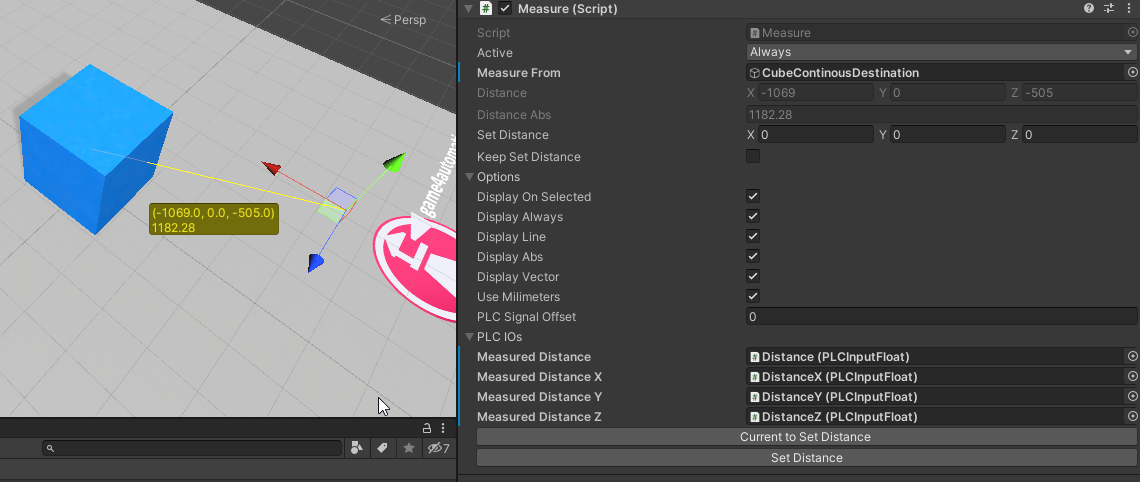You can also connect the result of the measurement to a PLCInput Signal. By doing this Measure is able to act as a distance sensor.