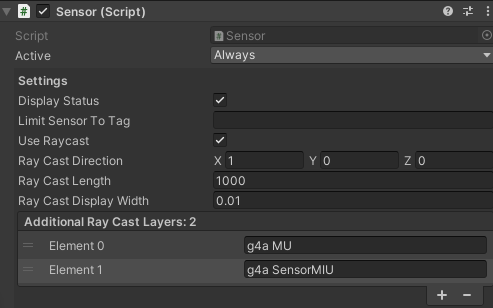 Because collisions are used to detect the Sensor status you need to take care that the sensor game object is on the appropriate collision layer which should be normally *g4aSensor*.