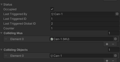 Besides the color of the sensor you can check the state of the sensor in the section *Sensor Status* in the Inspector of the Sensor.