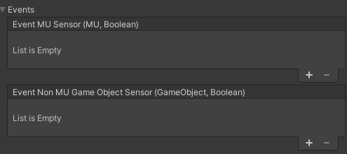 *Event Non MU Gameobjet Sensor* is called for all colliders without an MU script that are colliding with the Sensor.
