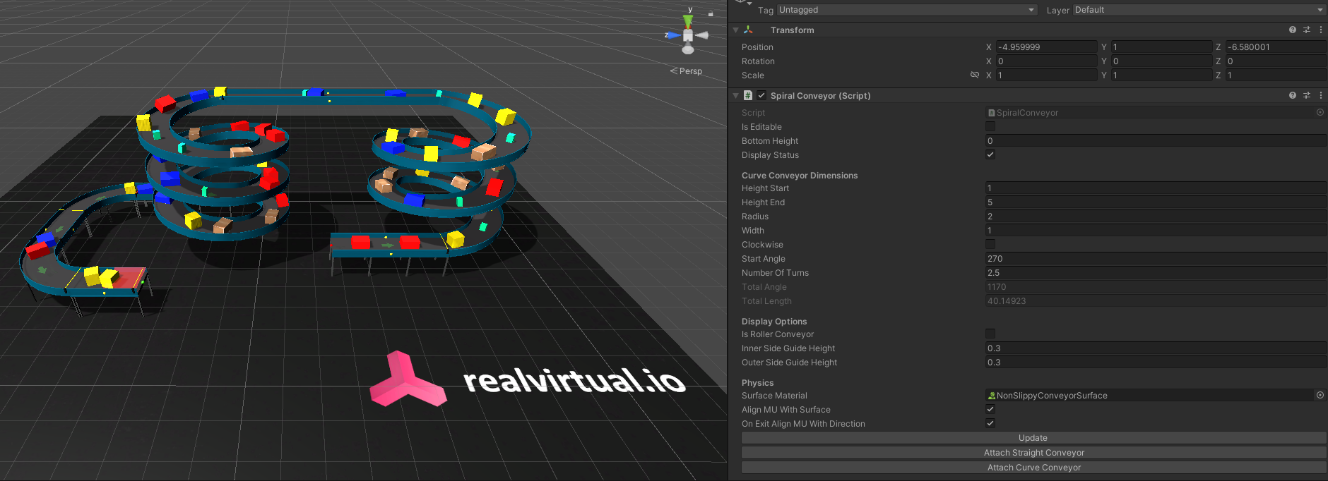 This library is an extension for realvirtual.io Starter or realvirtual.io Professional. This library can be obtained from the Unity Asset Store or directly from us. To use the Conveyor Library, it is mandatory to install realvirtual.io Starter or realvirtual.io Professional first. Please always use the latest versions of realvirtual.io Starter or Professional with the latest Conveyor Library.