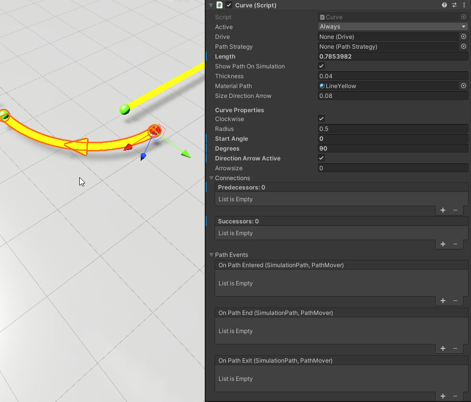 The Curve is used, together with the [Line](https://doc.realvirtual.io/extensions/page-4/path-system/line) to model a Path System. The [MUs](https://doc.realvirtual.io/components-and-scripts/mu-movable-unit) are moved along the Line with the [Path Mover.](https://doc.realvirtual.io/extensions/page-4/path-system/pathmover)
