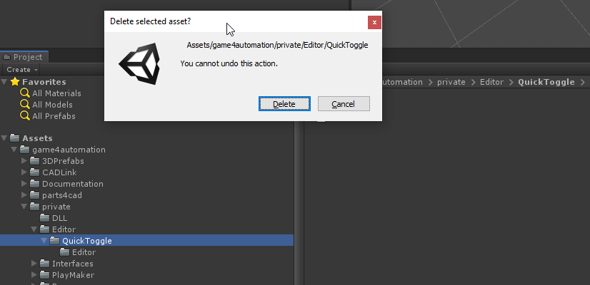 Please remove Assetsgame4automationprivateEditorQuickToggle folder when upgrading from Version 1.031 and below!